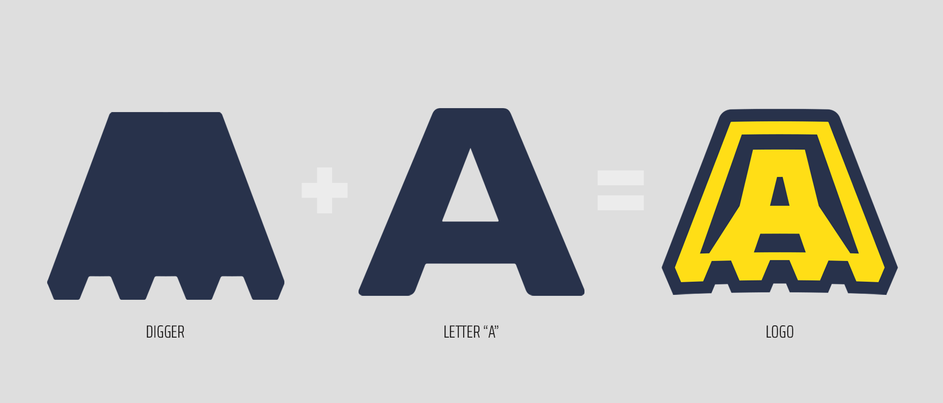 Using a literal theme of an excavator bucket, I incorporated the letter ‘A’ in a 3D style with thick negative space to represent the ruggedness of their trade.