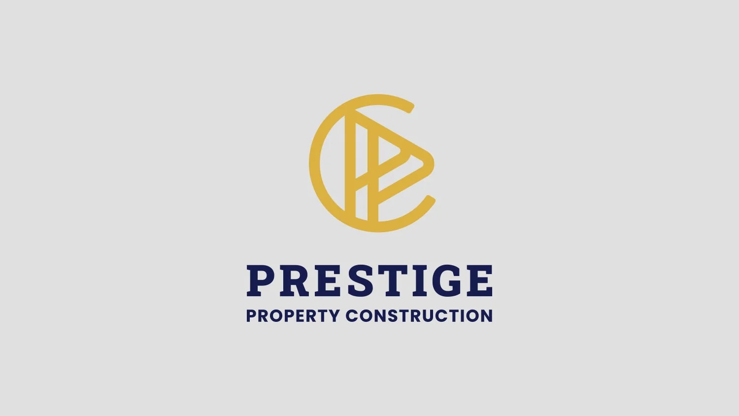 Prestige Property Construction is a Sydney based building company focusing on high-end home construction. The owners requested a simple logo design with an elegant and luxurious feel with a tie in to their trade. The solution was a monogram style design evoking a sophisticated and vintage feel with a thick serif typeface representing the solid foundations of their work.