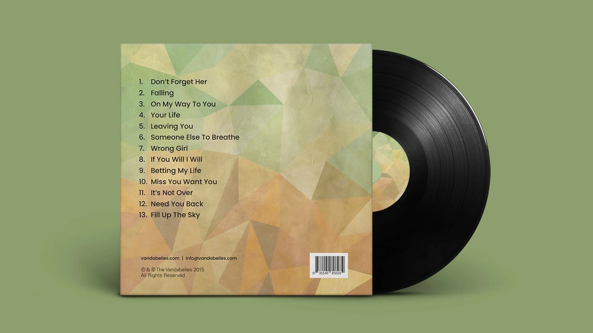 The artwork was based on the theme of the title track, a war widow mourning the loss of a husband and solider. I chose to use low poly as a general feel which represented fragments of time and memories of the couple. I split the design into two parts of a map, one being the safety of home and the other being a war zone. I also incorporated faces of the husband and wife as well as a heart representing their love.